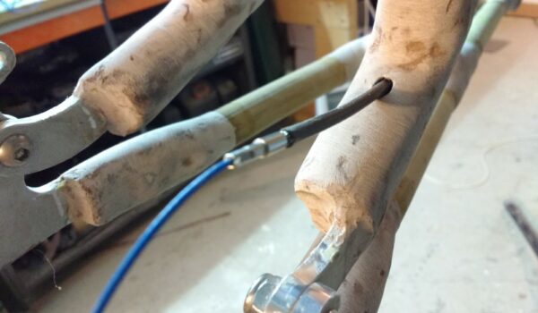 Au cours de la fabrication, j’ai choisi de remonter le tube horizontale pour avoir plus de rigidité dans la direction, mais ce choix s’est avéré peu judicieux car l’enjambement est un peu plus difficile !