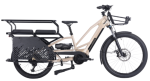 - Longtail à assistance électrique très compact, à peine plus long qu’un vélo adulte classique.